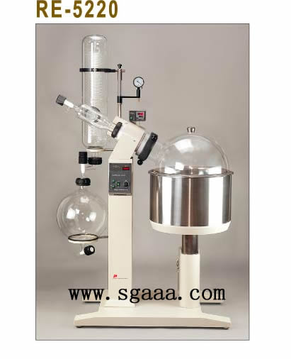 RE-5220旋轉(zhuǎn)蒸發(fā)器 產(chǎn)品簡介: RE-5220旋轉(zhuǎn)蒸發(fā)器落地式旋轉(zhuǎn)蒸發(fā)器,采用大容量,大孔徑旋轉(zhuǎn)蒸發(fā)瓶,增大蒸發(fā)面積,在減壓中置于水浴中,廣泛應(yīng)用于樣品的規(guī);瘽饪s、干燥、提取、回收等,是化工、醫(yī)藥、食品、環(huán)保、高校等科研實(shí)驗(yàn)及工業(yè)化批量生產(chǎn)理想的設(shè)備。 特點(diǎn): 1、主機(jī)部分:引進(jìn)國外先進(jìn)的傳動(dòng)系統(tǒng),結(jié)構(gòu)合理,經(jīng)久耐用,實(shí)用性強(qiáng). 2、控制和溫度部分:引進(jìn)國外先進(jìn)的變頻控制系統(tǒng)、溫控系統(tǒng),確保儀器精確性能。 3、水浴鍋:選用進(jìn)口不銹鋼一次沖壓成形,立式自動(dòng)升降 4、密封部件:選用國外較新的PTFE材料經(jīng)特殊工藝技術(shù)處理,增強(qiáng)了密封性、防腐性、耐磨性。 5、主體結(jié)構(gòu):采用優(yōu)質(zhì)鋁合金及不銹鋼材料,更加完善和提高儀器的合理性能。