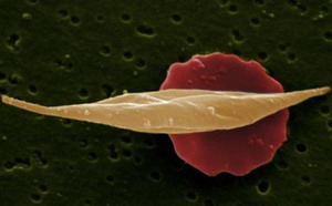 這張電子掃描顯微照片也是由安妮-韋斯頓(Anne Weston)拍攝的,它顯示從肺癌細胞培基上長出的單細胞,其中不對稱紫色突起叫做“大皰”,它與癌細胞產(chǎn)生質(zhì)膜的細胞骨架出現(xiàn)局部分離。起泡對于包括細胞移動、細胞分裂、物理和化學(xué)應(yīng)力的多樣性細胞變化進程非常重要。
