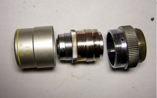 物鏡的部份,倍率越高物鏡就越長,當(dāng)然結(jié)構(gòu)也相對復(fù)雜。還好物鏡的螺紋有標(biāo)準(zhǔn)規(guī)格,所以A家的物鏡和B家的物鏡其實可以互相替換。